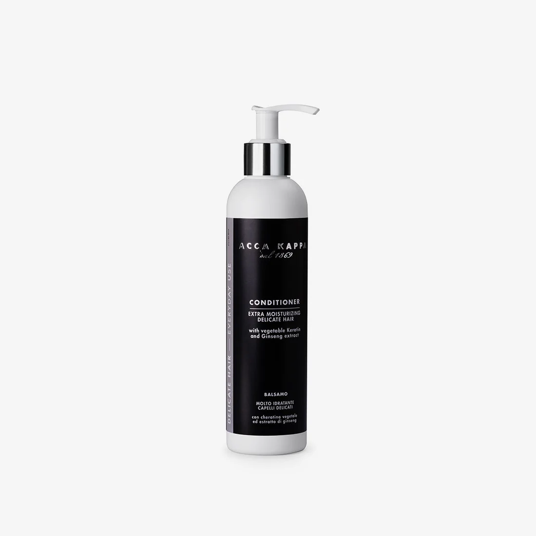 El acondicionador capilar Muschio Bianco de Acca Kappa ha sido diseñado para nutrir, suavizar y proteger el cabello, envolviéndolo con la frescura inconfundible de la icónica fragancia Muschio Bianco. Su fórmula, enriquecida con agentes hidratantes y acondicionadores de origen natural, ayuda a restaurar la elasticidad, mejorar la manejabilidad y reducir el encrespamiento, dejando la melena sedosa y con un brillo natural.