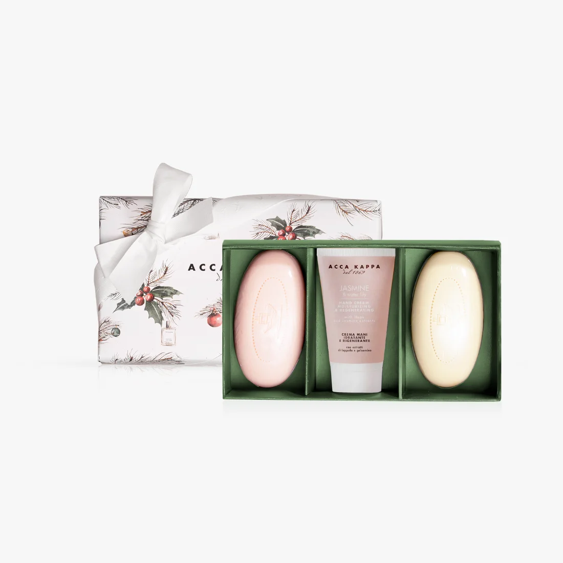 Una selección cuidadosa y refinada de algunos de los mejores productos de Acca Kappa, elegantemente presentados en un sofisticado estuche de regalo.