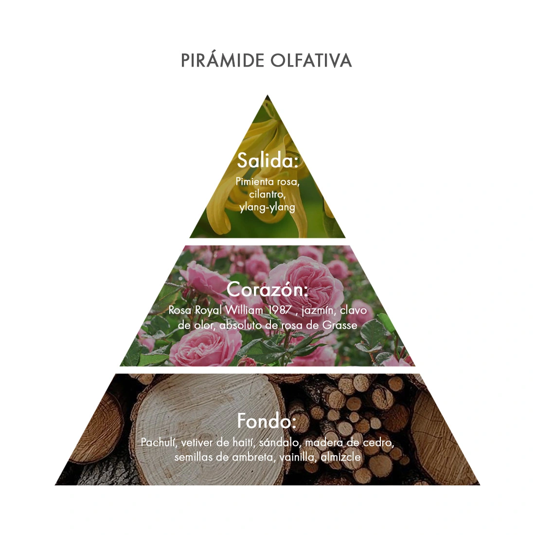 | Pirámide olfativa | Notas de salida: Pimienta rosa – Cilantro – Ylang-Ylang |