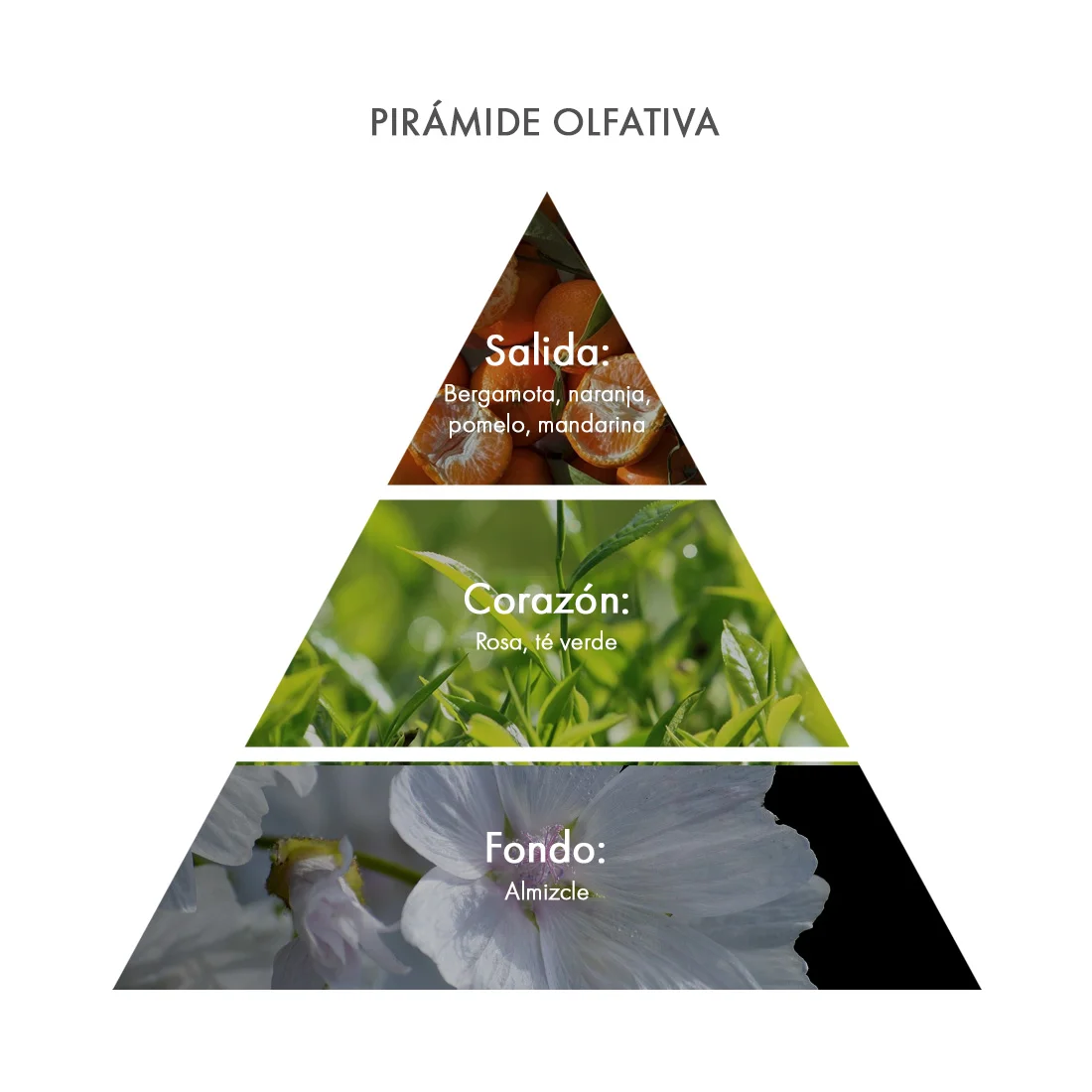 | Pirámide olfativa | Notas de salida: Bergamota italiana – Naranja – Toronja – Mandarina |