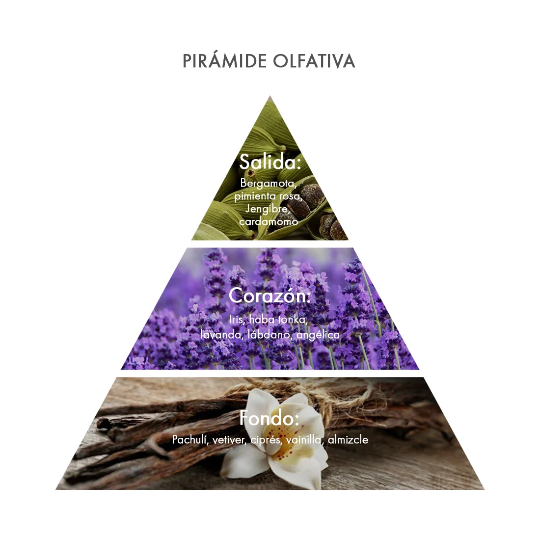 | Pirámide olfativa | Notas de salida: Bergamota – Pimienta rosa – Jengibre – Cardamomo |