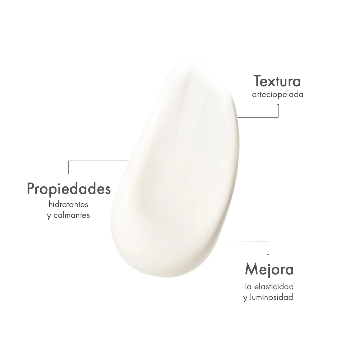 | Ingredientes | Agua, triglicérido caprílico/cáprico, alcohol cetearílico, perfume (fragancia), cetearilsulfato de sodio, glicerina, ácido esteárico, ácidos/glicéridos de almendra/borraja/linaza/oliva, extracto de tallo de Opuntia Ficus-Indica, savia de vid de Vitis Vinifera (uva), PCA sódico, Olea Europa |