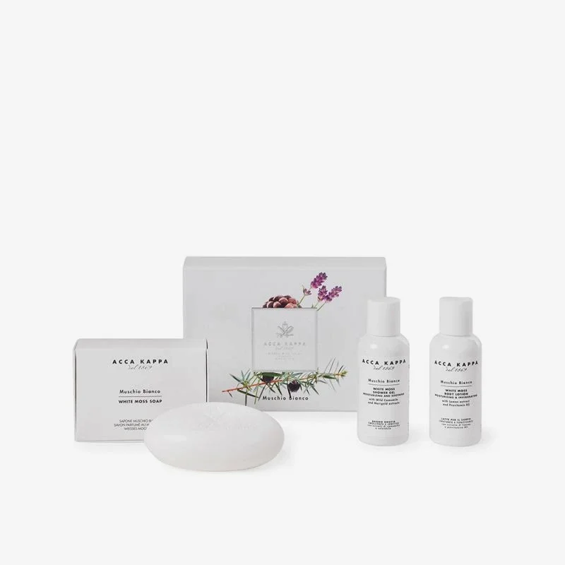 Una selección cuidadosa y refinada de algunos de los mejores productos de Acca Kappa, elegantemente presentados en un sofisticado estuche de regalo.