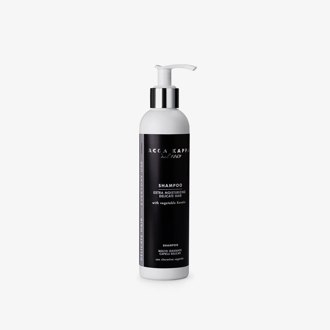 El shampoo Muschio Bianco de Acca Kappa ofrece una limpieza delicada que respeta el equilibrio natural del cuero cabelludo, mientras envuelve el cabello con la frescura atemporal de la fragancia Muschio Bianco. Su fórmula ha sido cuidadosamente desarrollada con agentes limpiadores suaves y extractos de origen natural que eliminan impurezas sin resecar, aportando ligereza, vitalidad y un brillo saludable.