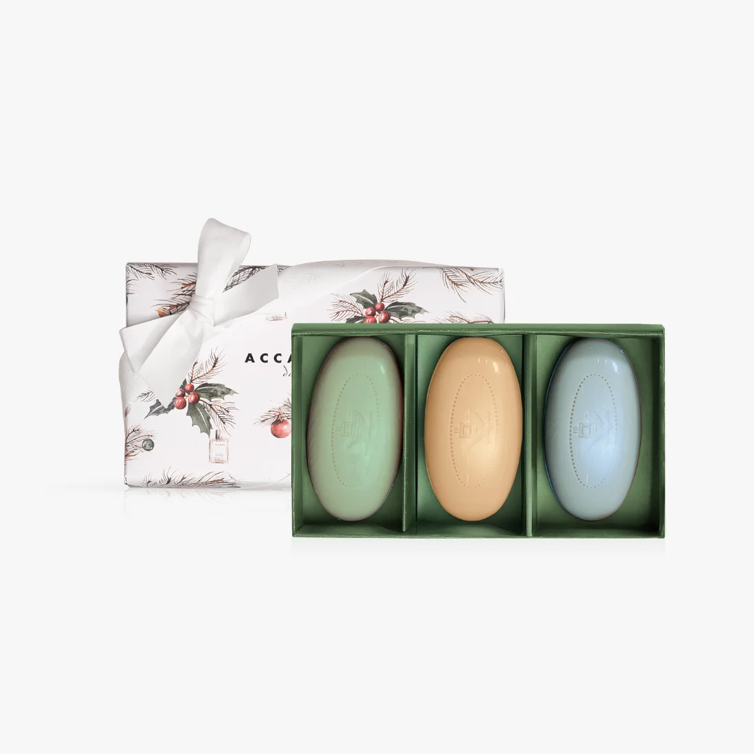 La Trilogia di Saponi Neutro reúne tres jabones vegetales artesanales de Acca Kappa, ideales para quienes buscan aromas suaves, cálidos y neutros, junto con una limpieza delicada que respeta la piel.